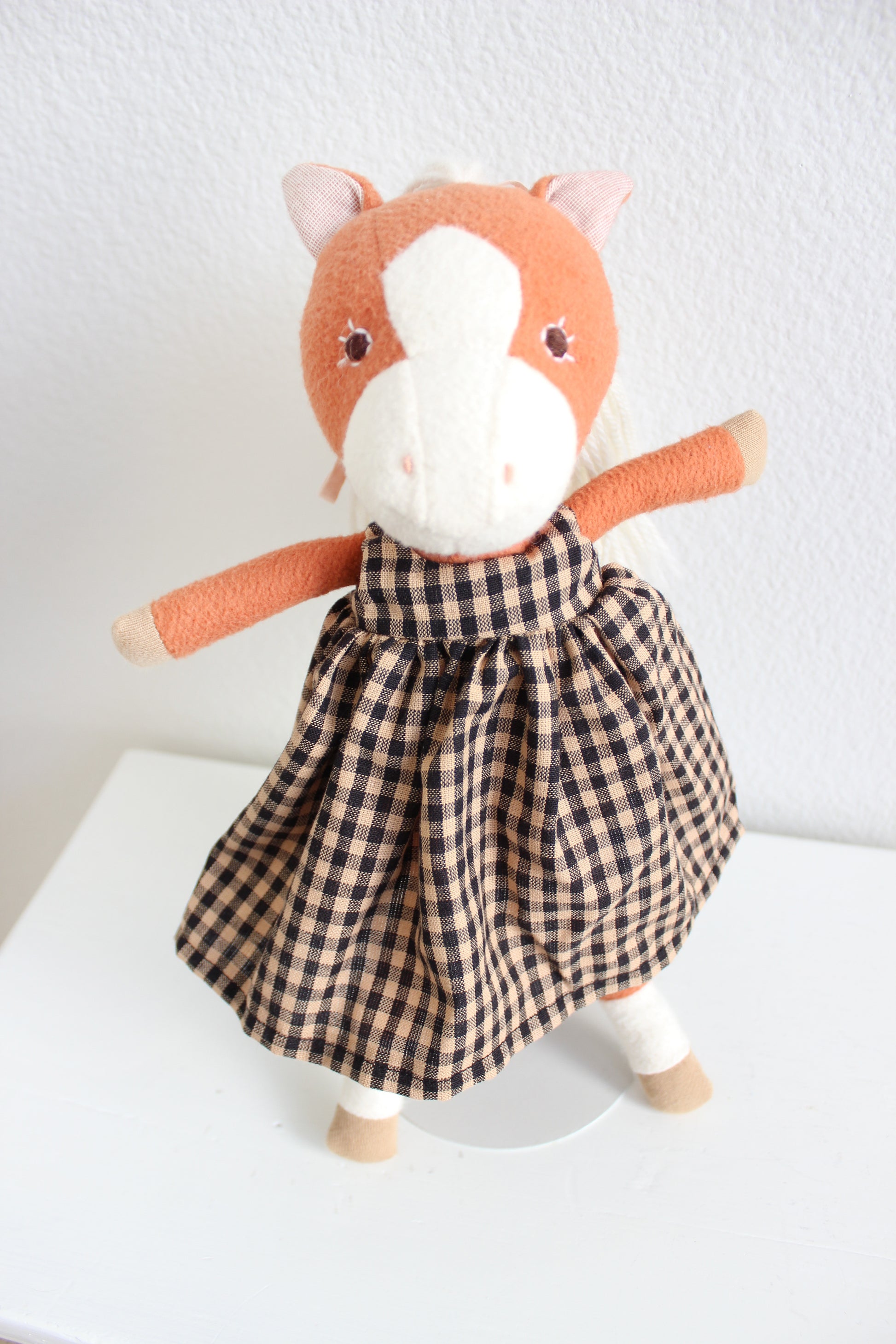 I do not claim creation of the dolls used as models nor am I affiliated with the brands shown. Dolls are used for buyer visualization only and are not included in the sale of the clothes and accessories. The clothes and accessories are made to fit 14 inch dolls, such as Hazel Village or Maileg Best friends. My products have not been child safety certified, and purchasing and use of my products are at the discretion and responsibility of the buyer.