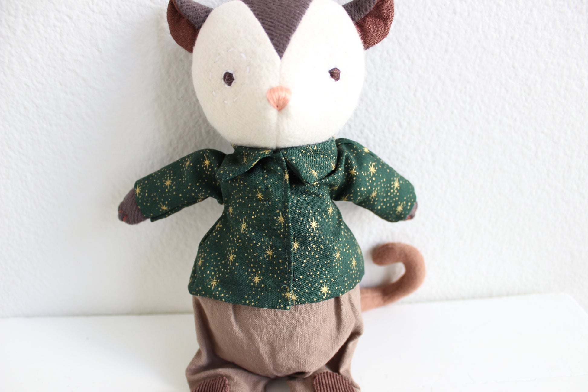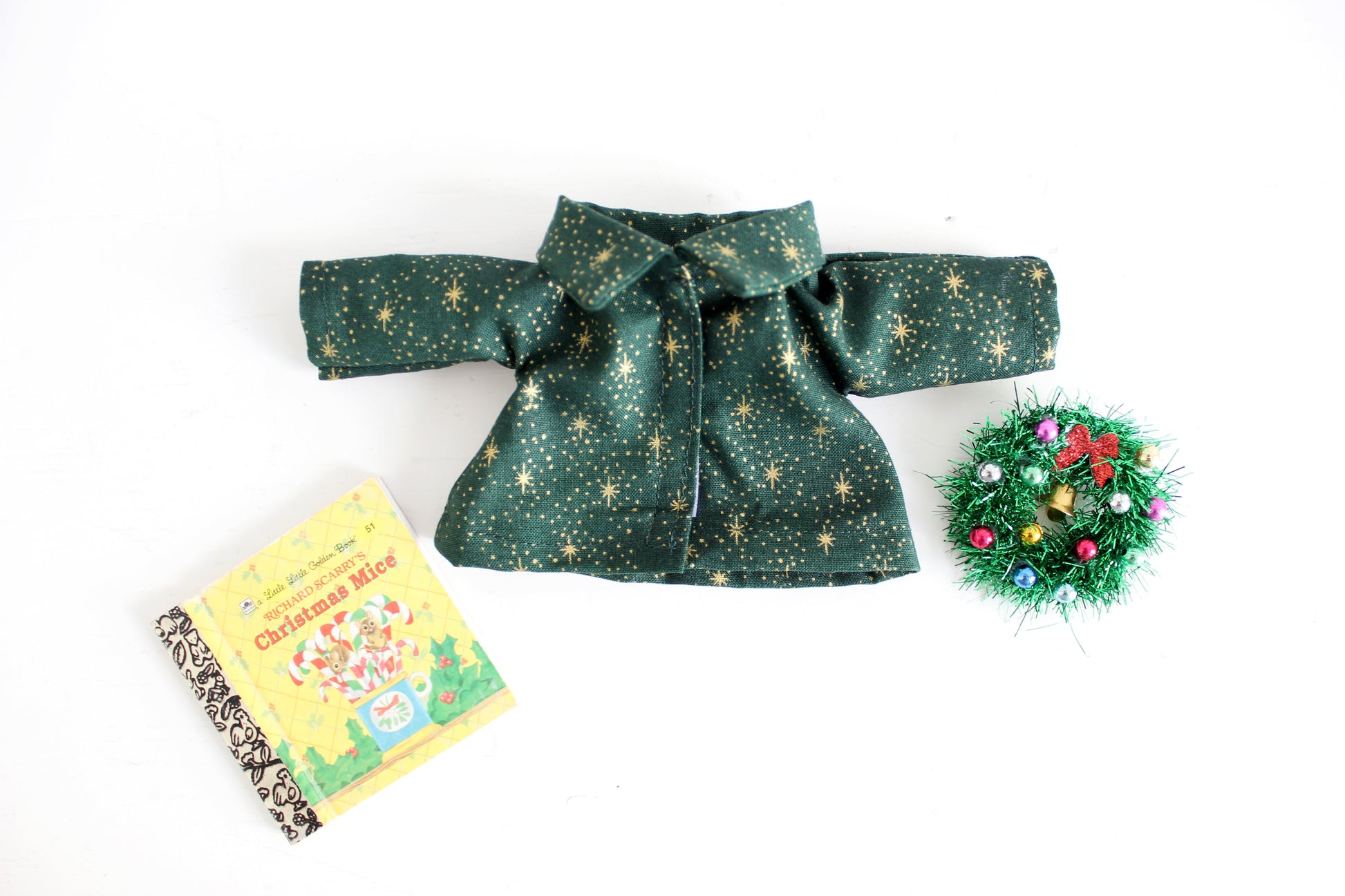 I do not claim creation of the dolls used as models nor am I affiliated with the brands shown. Dolls are used for buyer visualization only and are not included in the sale of the clothes and accessories. The clothes and accessories are made to fit 14 inch dolls, such as Hazel Village or Maileg Best friends. My products have not been child safety certified, and purchasing and use of my products are at the discretion and responsibility of the buyer.