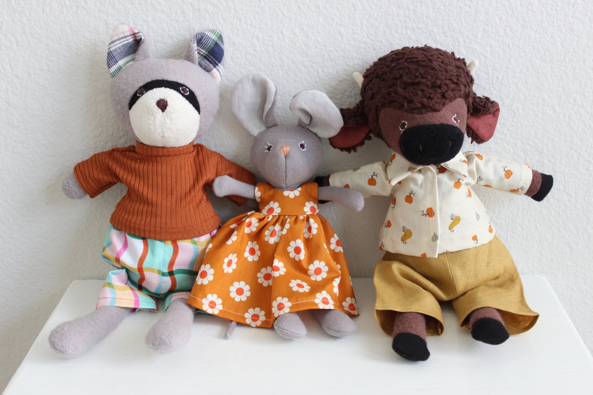 NOTICE: I do not claim creation of the dolls used as models nor am I affiliated with the brands shown. Dolls are used for buyer visualization only and are not included in the sale of the clothes and accessories. The clothes and accessories are made to fit 14 inch dolls, such as Hazel Village or Maileg Best friends. My products have not been child safety certified, and purchasing and use of my products are at the discretion and responsibility of the buyer.